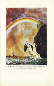 The book I devoted to Russian dreams was Arc of Utopia The Beautiful Story of the Russian Revolution and it was published in October 2017 by Reaktion. It had a fabulous cover, as shown above. But this gorgeous image was also in the running, It was an illustration for the Society of Wagnerian Art’s chamber performance of  Das Rheingold in Leningrad in 1925 (in those twelve years after the October Revolution when the future of Soviet Russian culture was still in the balance, all modernist and Western influences not yet shut down). G. Kosyakov was the illustrator: